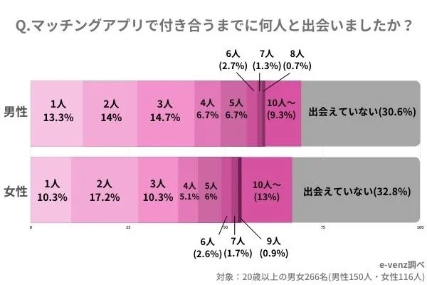 マッチングアプリのメリットは、恋人候補を同時に作ることができる点。素敵な恋人を見つけるまでに、何人の人と出会ったか聞いてみました。