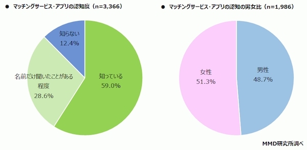 MMD研究所は、「マッチングサービス・アプリに関する最新調査」の結果を発表した。予備調査でスマートフォンを所有する20歳~49歳の独身男女10,000人、本調査でマッチングサービス・アプリ利用経験者500人から回答を得ている。
