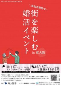 東大阪市が現在、12月に開催する「街を楽しむ婚活イベント in 東大阪」の参加者を募集している。(東大阪経済新聞)