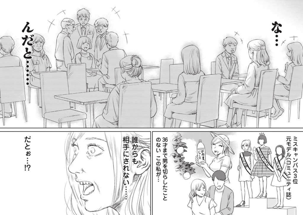 しかしそれにも納得……と言っていいものかどうか、青島は自称「婚活歴8年のベテラン」。それはつまり、場数を踏んだだけで成功してはいないということでは……。結局、赤木にも青島にも寄ってくる男は最後までおらず、2人とも何の収穫もなしに会場をあとにするのでした。