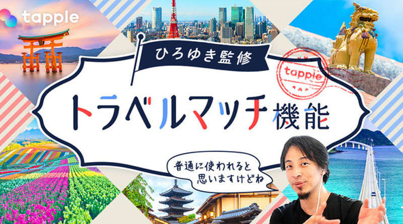 マッチングアプリ「タップル」、ひろゆき氏監修「トラベルマッチ機能」提供開始 旅先で観光案内をしてくれる相手とマッチング