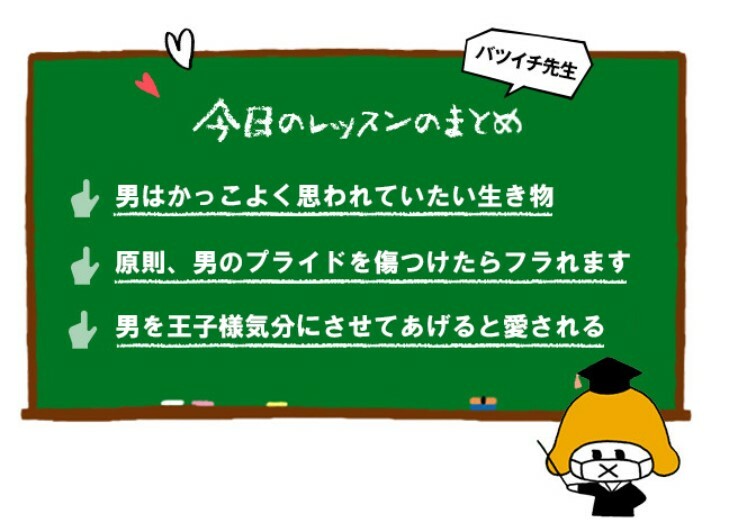 そんな特別であるべき自分の姿を人前で否定されてしまったら。愛の魔法は解けてしまって、彼のあなたを大事にしたい、守りたいという気持ちは、どんどん死んで行ってしまうわ。彼らはとにかく、人から「かっこいい」って思われてたいの。だからみんなの前ではどれだけ彼が素敵かってことをみんなに伝えて、彼を「俺はやっぱりイイ男」って気持ちにさせるべし!